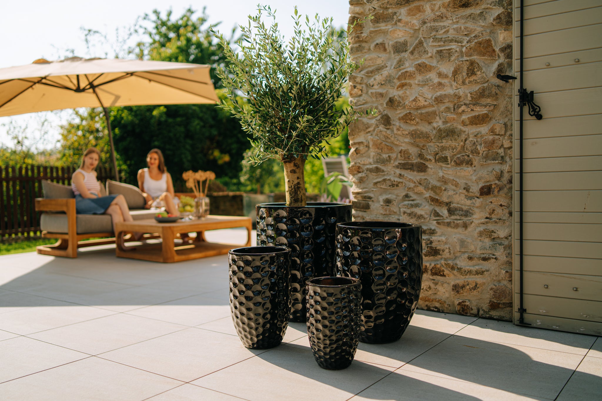 Verleihen Sie Ihrem Garten mit dem handgefertigten Provencelia Merovee Pflanzgefäß zeitlosen Stil. Inspiriert vom traditionellen Anduze-Stil ist dieses Pflanzgefäß sorgfältig aus glasierter Terrakotta gefertigt, die frost- und wetterbeständig ist. Erhältlich in mehreren Größen – von S bis XL mit einer Höhe von bis zu 65 cm und einem Durchmesser von 55 cm – besticht es durch seine unverwechselbare schwarze Farbe und sein einzigartiges Design, das Reinheit und Schlichtheit unterstreicht.