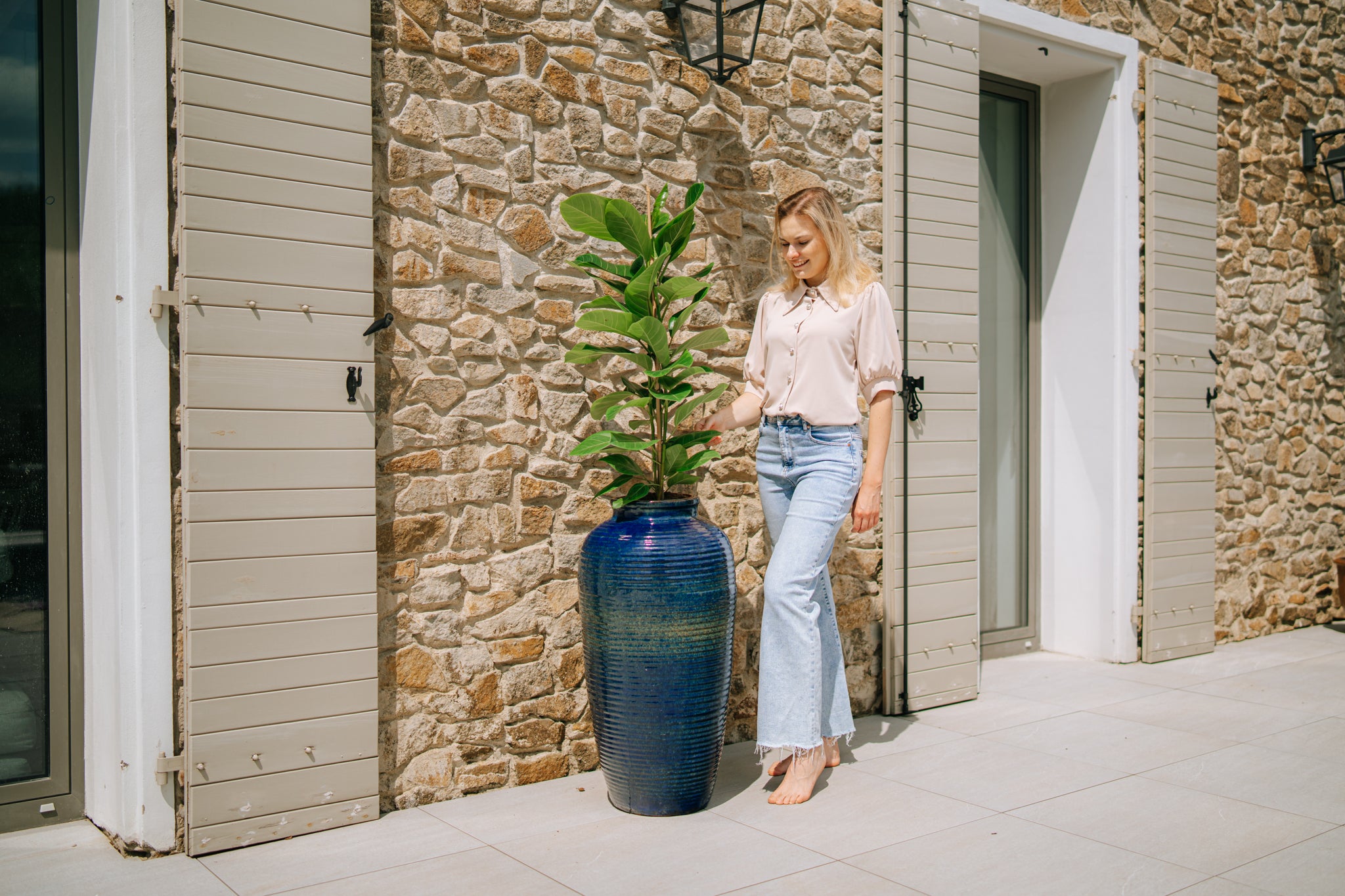 Verleihen Sie Ihrem Garten zeitlose Eleganz mit dem handgefertigten Pflanzgefäß Provencelia Archimede. Inspiriert von traditionellen mediterranen Formen ist dieses hohe, glasierte Terrakotta-Gefäß in tropischem Meeresblau frost- und wetterbeständig. Mit einer Höhe von 83 cm und einem Durchmesser von 40 cm wird es zum Blickfang in Ihrem Außenbereich.
