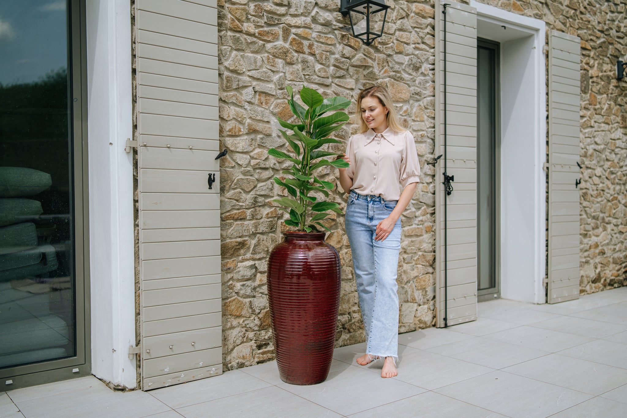 Verleihen Sie Ihrem Garten zeitlose Eleganz mit dem handgefertigten Pflanzgefäß Provencelia Archimede. Inspiriert von traditionellen mediterranen Formen ist dieses hohe, glasierte Terrakotta-Gefäß in Ziegelrot frost- und wetterbeständig. Mit einer Höhe von 83 cm und einem Durchmesser von 40 cm wird es zum Blickfang in Ihrem Außenbereich.