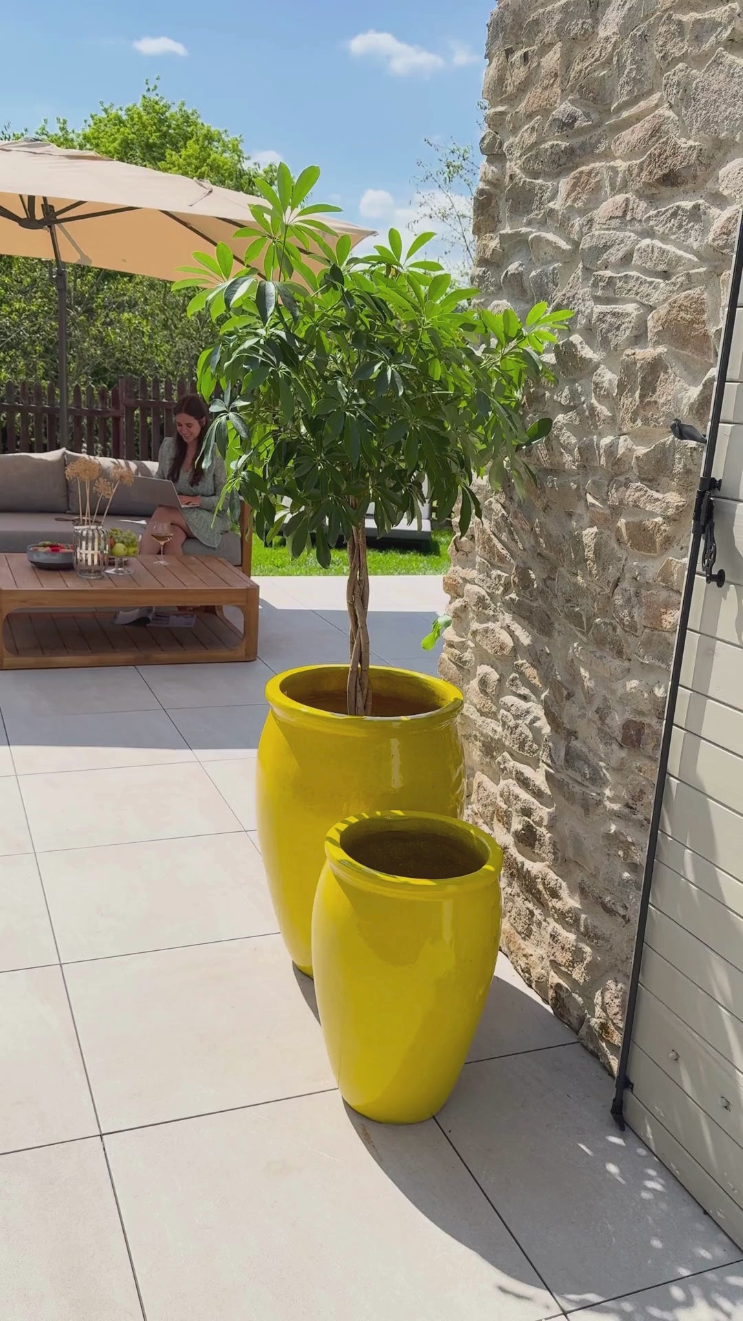 Erhältlich in zwei Größen – von XL bis XXL – mit einer Höhe von bis zu 68 cm und einem Durchmesser von 50 cm. Seine strahlend gelbe Farbe und das klare Design betonen die schlichte Eleganz.