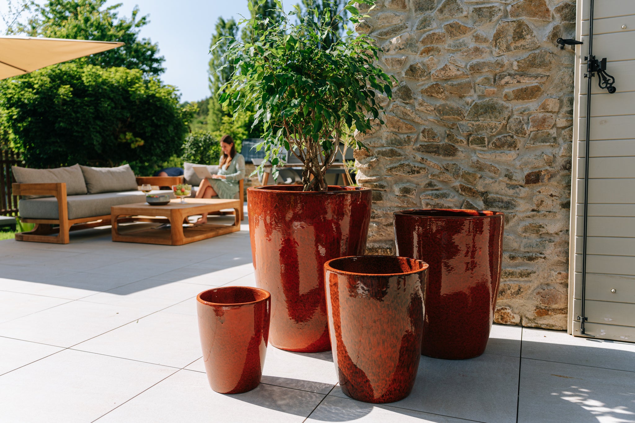 Der Mazarin Blumentopf wird von erfahrenen Handwerkern aus glasierter Terrakotta handgefertigt, wodurch jedes Stück ein Unikat ist. Seine schlichte und raffinierte Form passt sowohl in klassische als auch in moderne Außenbereiche, ist wetterfest und pflegeleicht. Die orange Farbe unterstreicht die Eleganz und schafft eine natürliche Harmonie mit Ihrem Grün. Der Mazarin Blumentopf ist die ideale Wahl für Liebhaber schöner Pflanzen und authentischen Designs und wird zu einer unverzichtbaren Ergänzung für Ihren Garten, Ihre Terrasse oder Ihren Balkon.