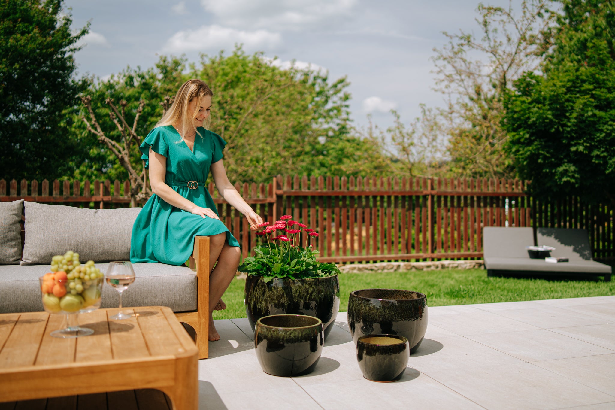 Verleihen Sie Ihrem Garten oder Ihrer Terrasse zeitlose Eleganz mit dem Romulus-Pflanzgefäß. Dieses handgefertigte Schmuckstück aus glasierter Terrakotta beeindruckt mit seiner einzigartigen Kombination aus Schwarz und Grün, die Tiefe, Ruhe und natürlichen Charakter in jeden Außenbereich bringt.