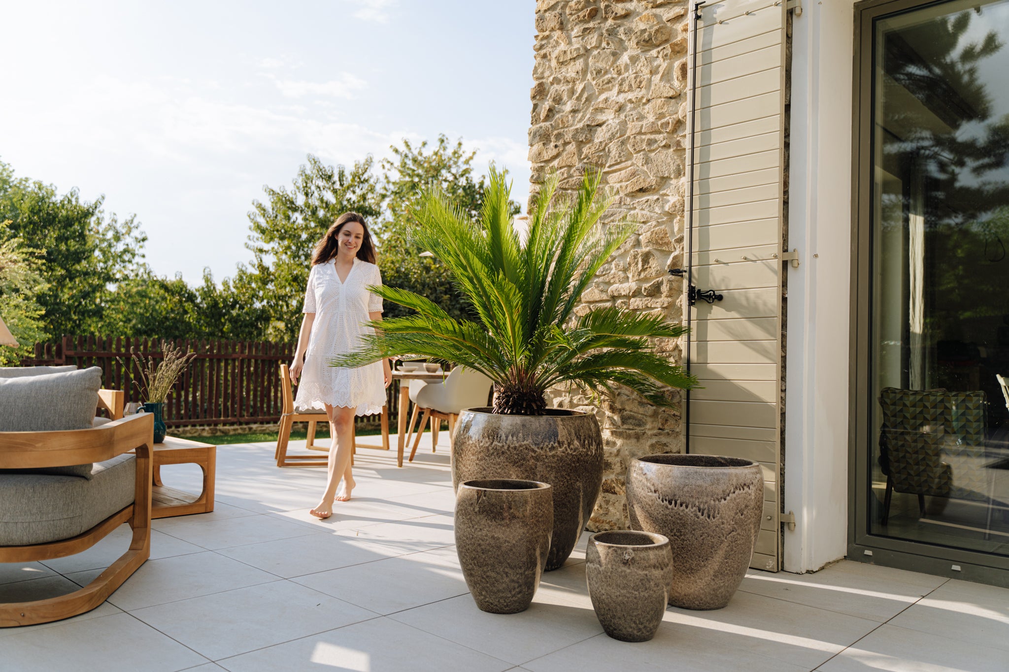 Der LAFONTAINE- Blumentopf ist für den Außen- und Innenbereich geeignet und verfügt über ein Loch im Boden für den natürlichen Abfluss von überschüssigem Wasser. Jedes Stück ist handgefertigt und somit eine einzigartige und authentische Ergänzung für Ihren Außenbereich. Dank seiner hochwertigen Verarbeitung und seines zeitlosen Designs eignet es sich auch hervorragend als Geschenk für besondere Anlässe.